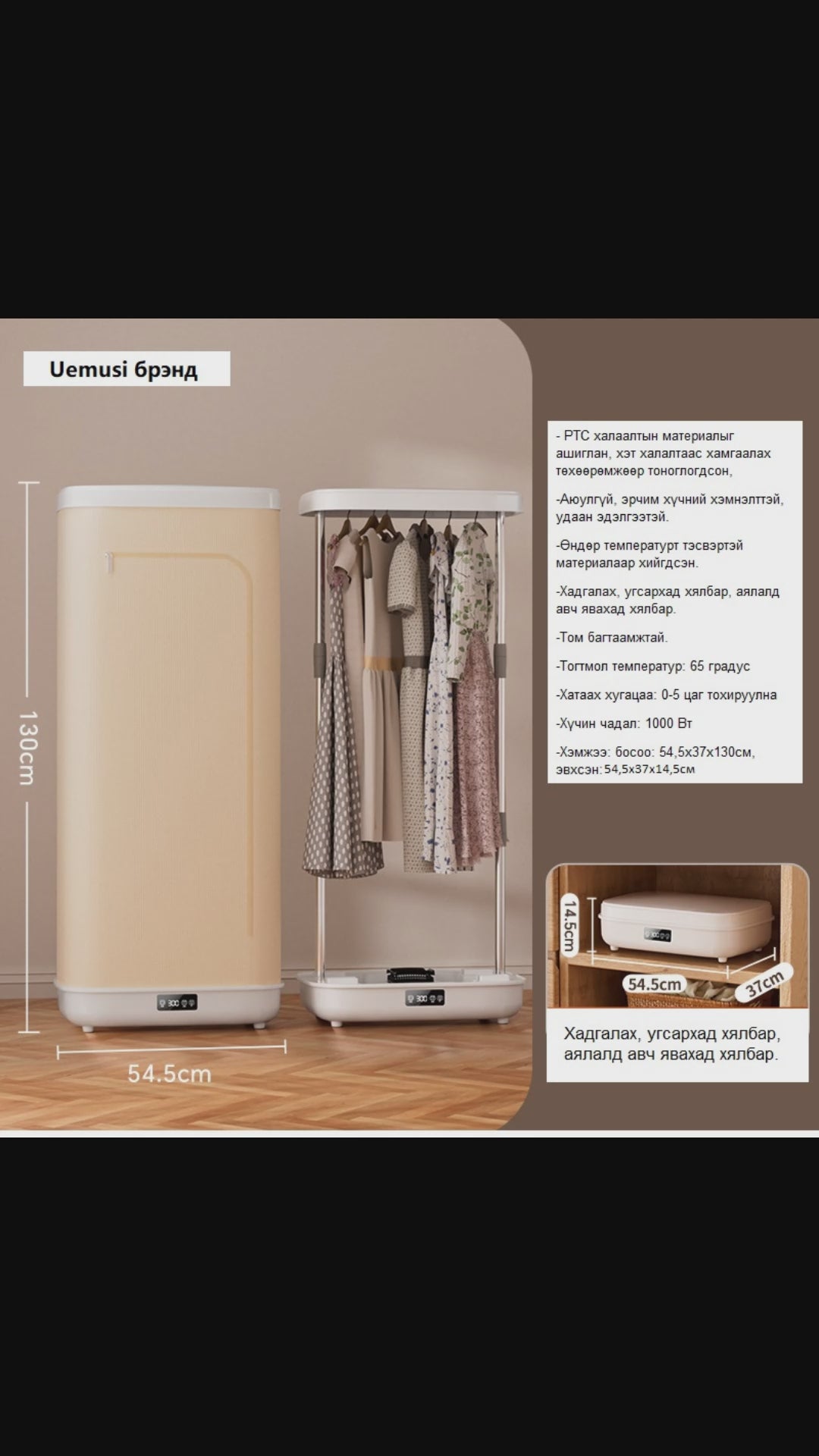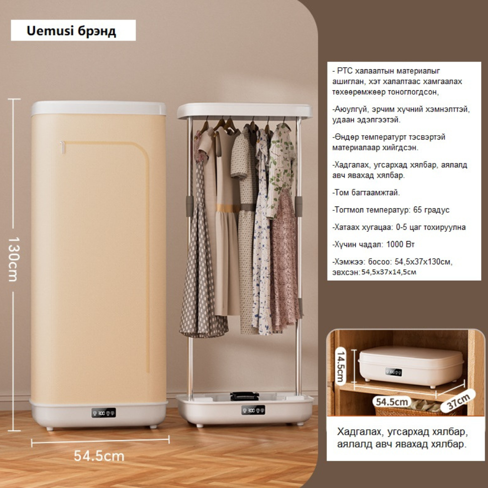 Хэмжээ: босоо 54,5х37х130см, эвхсэн: 54,5х37х14,5см